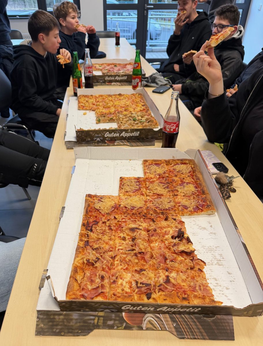 Nachdem über den ganzen Vormittag hinweg fleißig eingesammelt wurde, gab es zum Mittag die verdiente Stärkung mit Pizza und Kaltgetränken im Feuerwehrgerätehaus Schmidtheim.